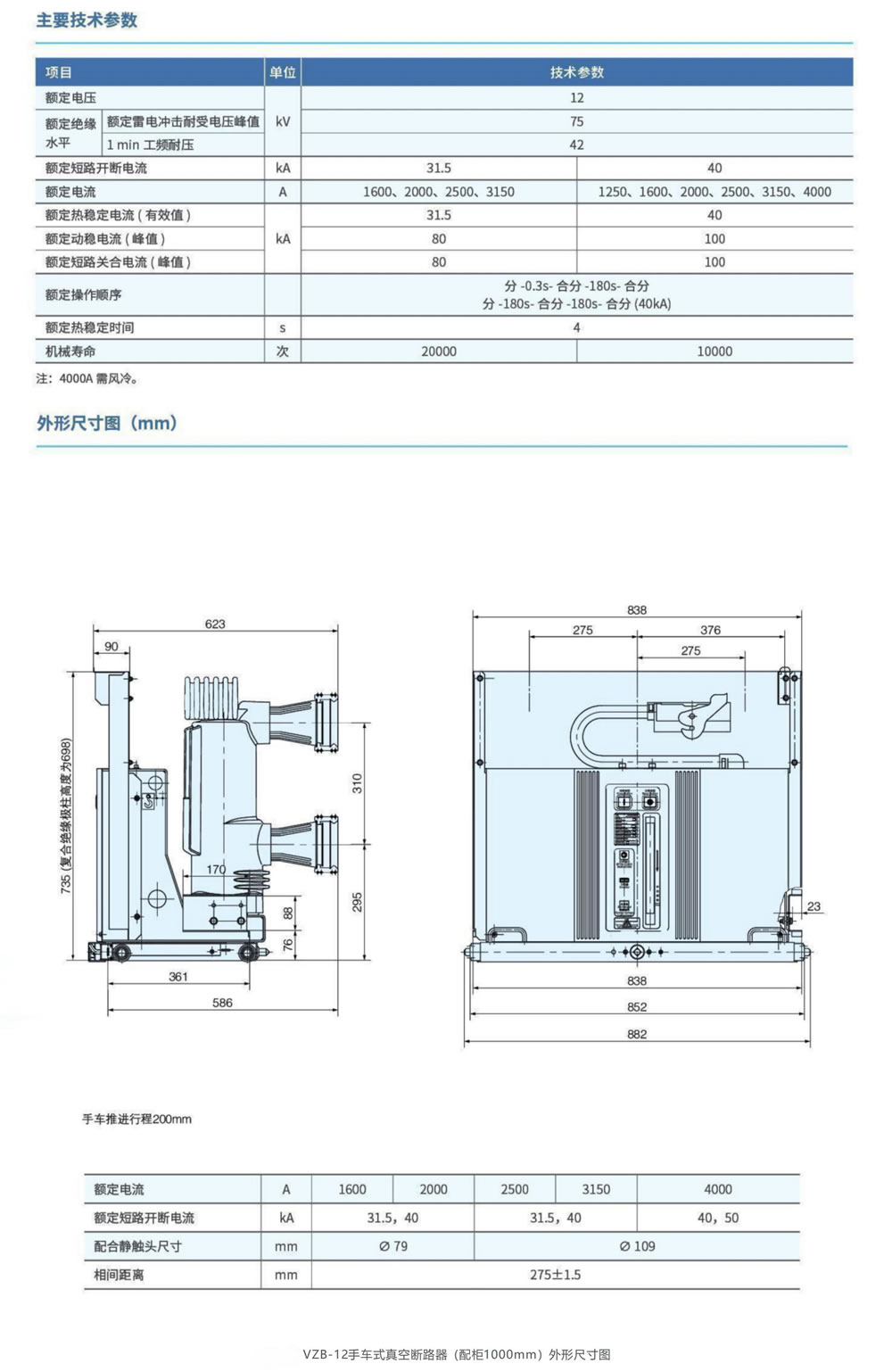 VZB-12手車式真空斷路器(配柜1000mm)
